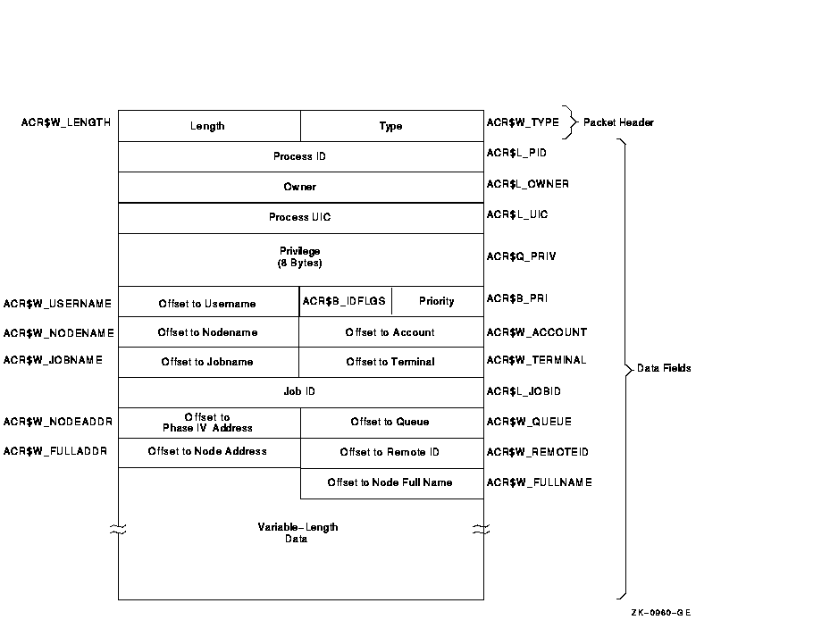 All information packets start with a packet header that has ACR$W_LENGTH and ACR$W_TYPE fields (see Table C-5 and Table C-6).