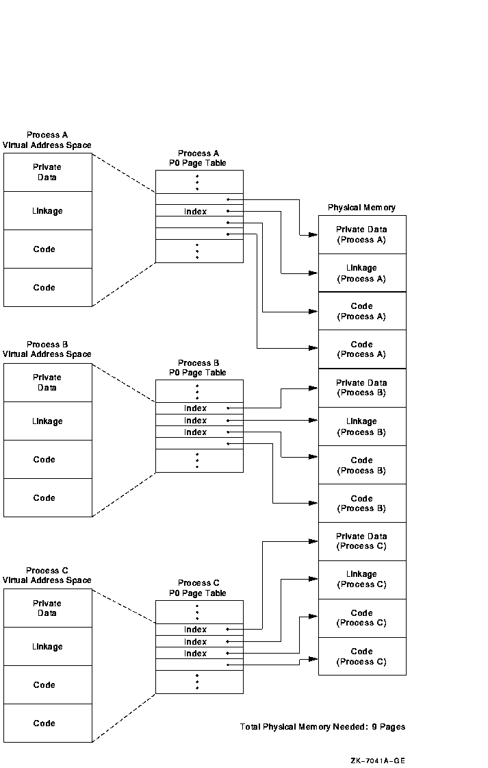 Memory sharing (either code or data) is accomplished using a systemwide