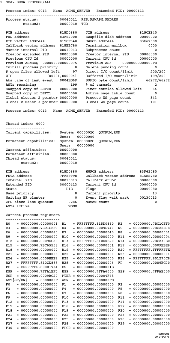 The SHOW PROCESS/ALL command displays information taken from the PCB