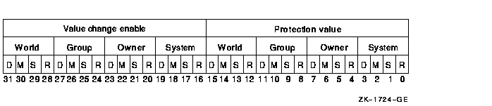 The SJC$_NO_PAGINATE item code is a Boolean item code. It specifies that the symbiont should not paginate the output. (Valid for SJC$_ADD_FILE, SJC$_ALTER_JOB, SJC$_ALTER_QUEUE, SJC$_CREATE_QUEUE, SJC$_ENTER_FILE, SJC$_START_QUEUE function codes) SJC$_PARAMETER_1 through SJC$_PARAMETER_8SJC$_NO_PARAMETERSThe SJC$_PARAMETER_1 through SJC$_PARAMETER_8 item codes are input value item codes; the last digit of the item code name is a number from 1 through 8. For each item code specified, the buffer must specify a string of no more than 255 characters. For batch jobs, the string becomes the value of the DCL symbol P1 through P8, respectively, within the outermost command procedure.For print jobs, the system makes the string available to the symbiont, though the standard OpenVMS print symbiont does not use this information. By default, each of the eight parameters specifies a null string. For function code SJC$_ALTER_JOB, if any SJC$_PARAMETER item is specified, the value of each unspecified item is the null string. The SJC$_NO_PARAMETERS item code is a Boolean item code. It specifies that none of the SJC$_PARAMETER items are to be passed in the batch or print job. It is the default. (Valid for SJC$_ALTER_JOB, SJC$_CREATE_JOB, SJC$_ENTER_FILE function codes) SJC$_PASSALLSJC$_NO_PASSALLThe SJC$_PASSALL item code is a Boolean item code. It is meaningful only for jobs submitted to output execution queues. It specifies that the symbiont is to print the file in PASSALL mode.The SJC$_NO_PASSALL item code is a Boolean item code. It specifies that the symbiont is not to print the file in PASSALL mode. It is the default. (Valid for SJC$_ADD_FILE, SJC$_ALTER_JOB, SJC$_ENTER_FILE function codes) SJC$_PRINTERBoolean item code. It is meaningful only for output queues. It specifies that the queue being created is a printer queue. The SJC$_BATCH, SJC$_PRINTER, SJC$_SERVER, and SJC$_TERMINAL item codes are mutually exclusive. If none of these item codes are specified, the default is SJC$_PRINTER.(Valid for SJC$_CREATE_QUEUE function code) SJC$_PRIORITYInput value item code. The buffer must specify a longword value in the range 0 through 255. This value specifies the scheduling priority of the job in a queue relative to the scheduling priority of other jobs in the same queue.By default, the scheduling priority of the job is the value of the system parameter DEFQUEPRI. If you specify a value for SJC$_PRIORITY that is greater than the system parameter MAXQUEPRI and you do not have either ALTPRI or OPER privilege, the system uses the greater of the following two values: DEFQUEPRI or MAXQUEPRI. If you have either ALTPRI or OPER privilege, the system uses any value you specify for SJC$_PRIORITY, even if it is included in the range between MAXQUEPRI + 1 and 255. (Valid for SJC$_ABORT_JOB, SJC$_ALTER_JOB, SJC$_CREATE_JOB, SJC$_ENTER_FILE function codes) SJC$_PROCESSORSJC$_NO_PROCESSORThe SJC$_PROCESSOR item code is an input value item code. The buffer must specify a valid OpenVMS RMS file name.When specified for an output execution queue, SJC$_PROCESSOR specifies that the symbiont image to be executed is SYS$SYSTEM:name.EXE, where name is the RMS file name contained in the buffer. When specified for a generic output queue, SJC$_PROCESSOR specifies that the generic queue can place jobs only in server queues that are executing the symbiont image SYS$SYSTEM:name.EXE, where name is the RMS file name contained in the buffer. The SJC$_NO_PROCESSOR item code is a Boolean item code. It specifies that the symbiont image to be executed is SYS$SYSTEM:PRTSMB.EXE. It is the default. (Valid for SJC$_CREATE_QUEUE, SJC$_START_QUEUE function codes) SJC$_PROTECTIONInput value item code. It specifies the protection of a queue.The buffer must specify a longword in the format shown in the following diagram:
