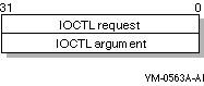 The first field is a longword containing the IOCTL encoded request code specifying the type of I/O control operation to be performed. The second field is a longword containing the address of a variable or a data structure targeted by this IOCTL command. |