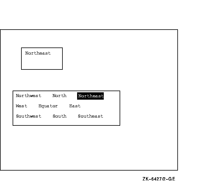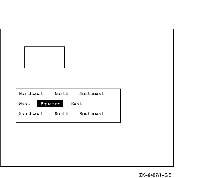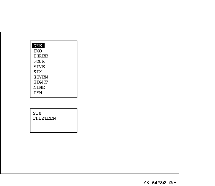 SMG$SELECT_FROM_MENU keyboard-id ,display-id ,selected-choice-number