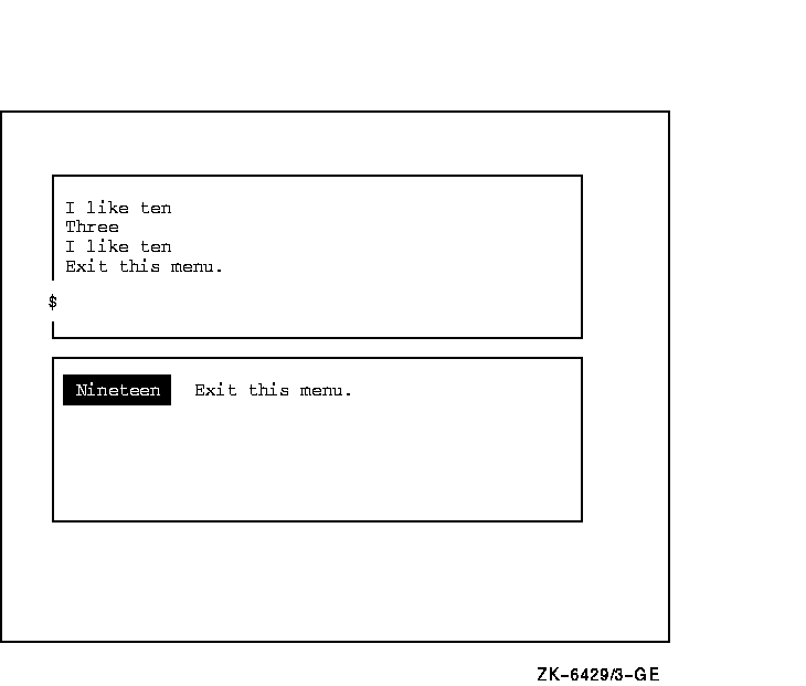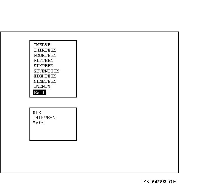 C SMG$CREATE_MENU, SMG$SELECT_FROM_MENU, and SMG$DELETE_MENU