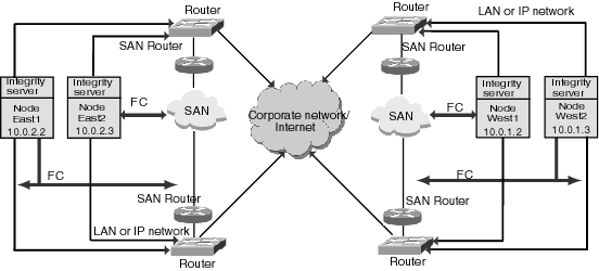 geographically distant sites. Node East1 and Node West1 forms a Virtual