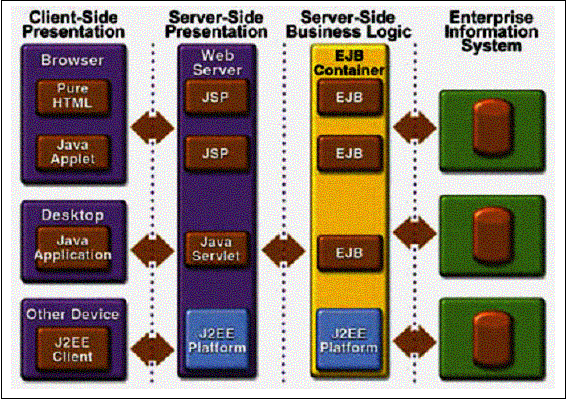 PCs, the Java 2 Platform Enterprise Edition (J2EE), which runs on the servers