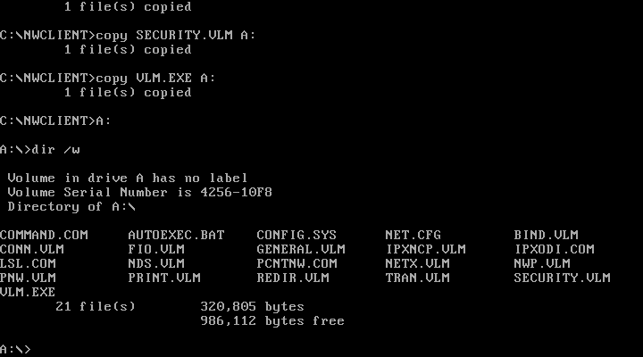 The next step involves creating a bootable floppy disk containing the NetWare client. Client32 isn't officially supported for network booting so you've either got to use NETX or the VLM client. The VLM client is the better choice here.