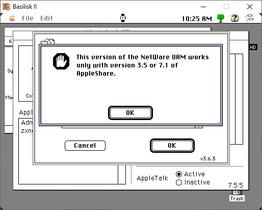 But it doesn't work with AppleShare 3.6. So I guess Mac System 7.6 is too new for this NetWare client.