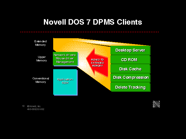 These are slides for a Novell DOS 7 presentation. They were unpacked from This GIF file which was obtained from a 1996 NSE Pro CD.