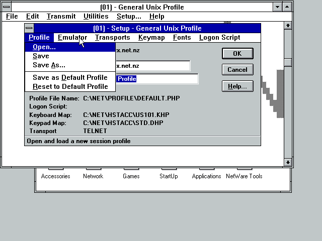 I didn't have any UNIX or VMS machines handy with telnet setup so I connected to my NetWare 4.11 server instead. I don't much like the black-on-white default but you can change it.