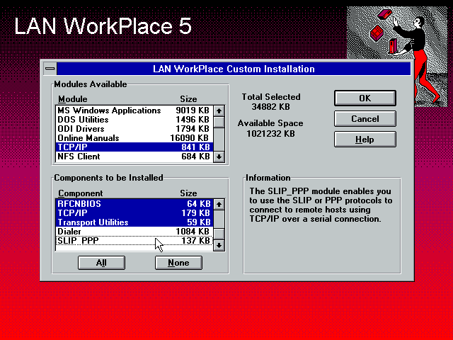 You can probably also deselect the Dialer and SLIP_PPP unless you're planning to use a modem. If you want to reduce its size by a lot you can also omit the Online Manuals.