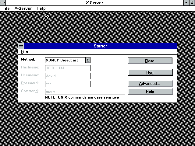 CDE! I expect this is all in hideous monochrome because Windows is running in some awful resolution+colour depth. But it works!