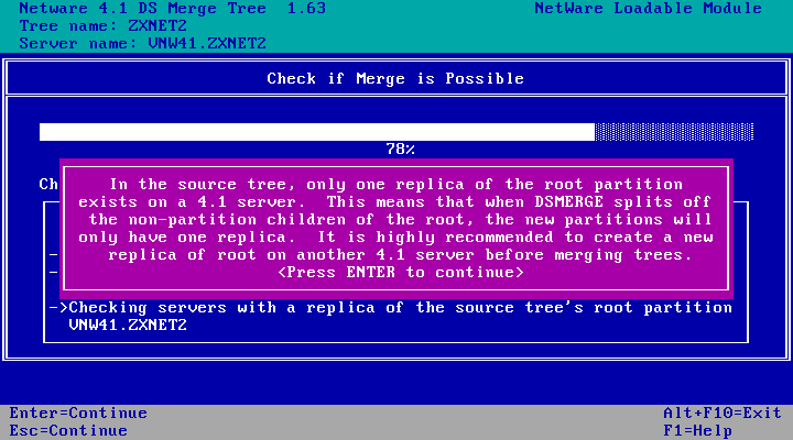 NetWare 4.10 server just to satisfy the merge (these are VMs, I can always revert to a good snapshot). So I'm just going