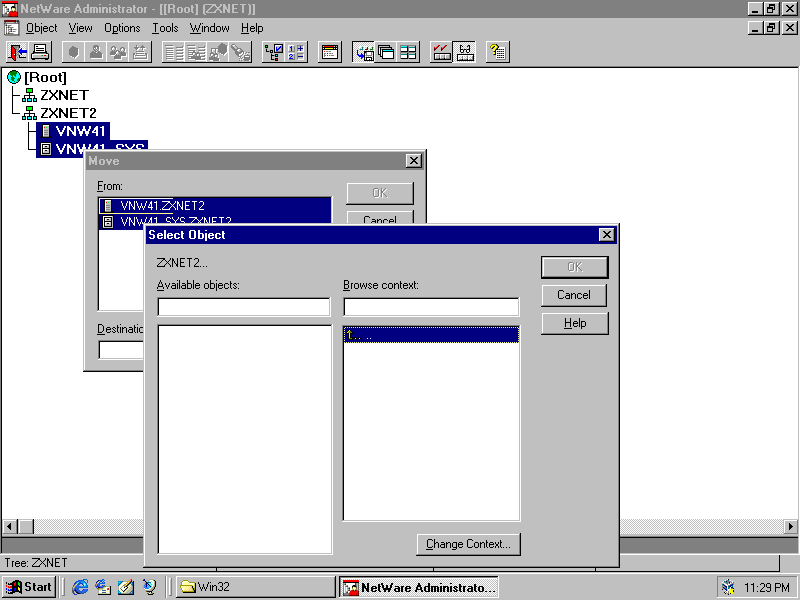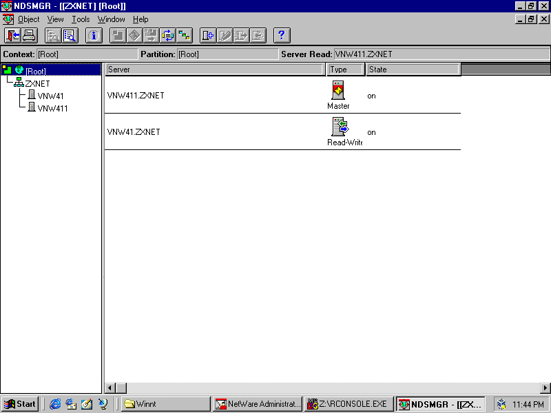 Next up, NDSMGR (SYS:\public\winnt\ndsmgr.exe on the NetWare 4.11 box). The organisation that was merged in (ZXNET2)