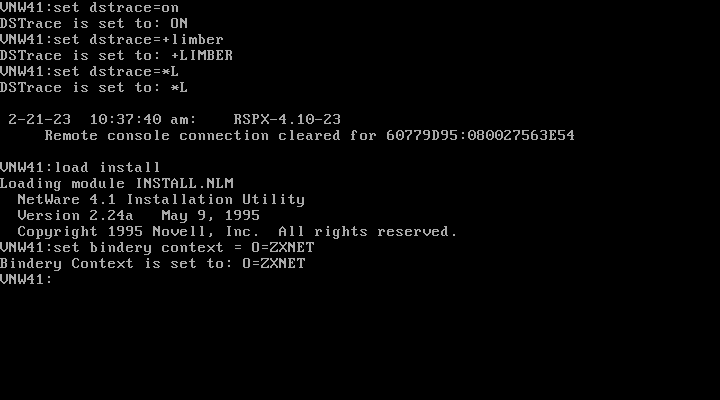 So the only way to do this I can find is to install NetWare 4.10 into its own tree with a unique name, bring it fully up-to-date so its DS.NLM is compatible with NetWare 4.11, then merge the two trees together. Thats what we'll be doing here.