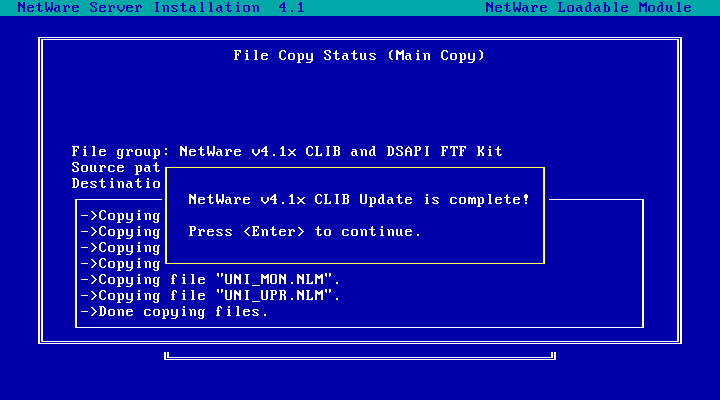 Then copy the new .NLM files from the 4.1x subdirectory over to SYS:\SYSTEM